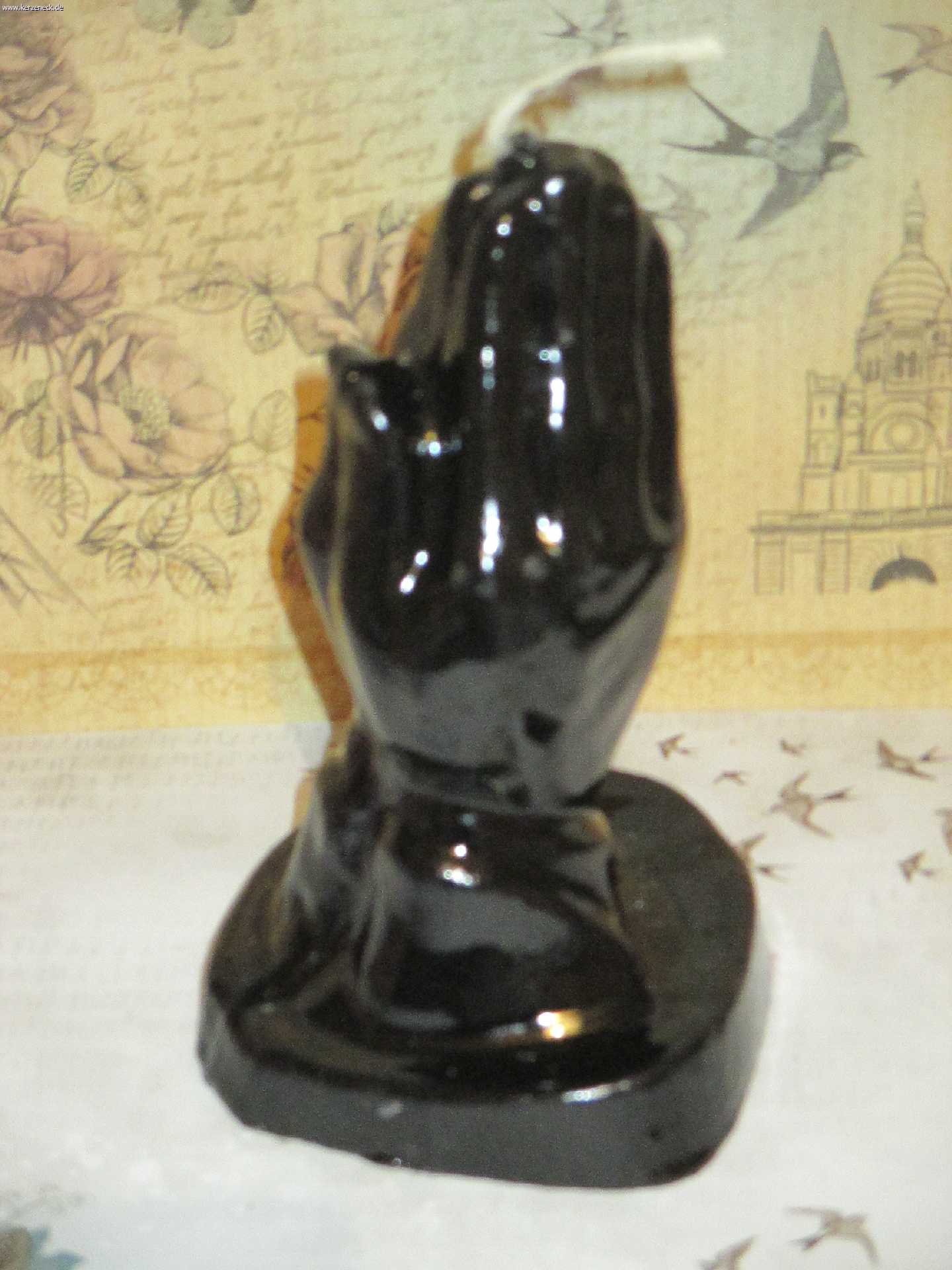 Betende Hände Schwarz Höhe: ca. 17cm Durchgefärbt! echte Handarbeit! Brenndauer: ca. 28 Stunden! Aktion war erfolgreich Das hat leider nicht geklappt. Warenkorb anzeigen Zur Kasse gehen Weiter einkaufen Produkt-ID: 2876 10,95 EUR incl. 16% USt. zzgl. Versand und weiteres Anzahl: St In den Warenkorb Auf den Merkzettel Betende Hände Silber Hochzeitskerze Weiß